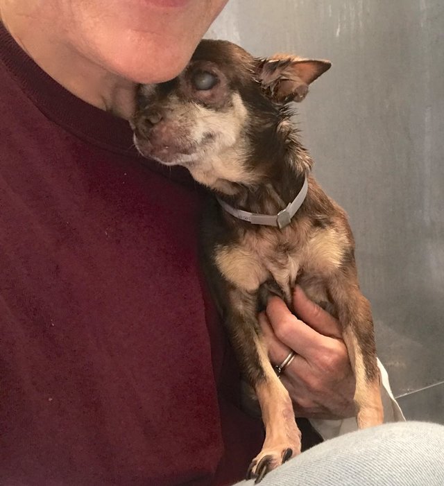 本月初,果凍的主人由於某些原因將牠遺棄在了鮑德溫公園庇護所。任何一隻狗狗面對這樣的變故都會難以忍受,更何況果凍不僅年老,而且還是一隻眼盲、部分聾啞,甚至于還患有其他疾病的狗狗。
