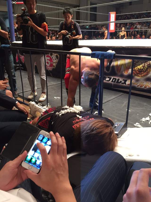 ▼Darryl的內戰散落得到處都是,內藤哲也背上也有不少。