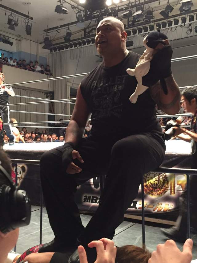 ▼上個週末,高橋廣夢帶Darryl參加3對3團賽,沒想到期間竟然發生了意外。Fale(ファレ)將高橋廣夢的隊友內藤哲也摔到了場外的播報席上,當時Darryl正乖乖趴在旁邊等主人回來,Fale一時激動,直接拿起Darryl撕扯起來!