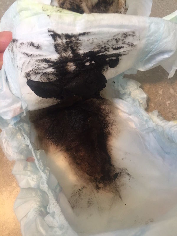▼雖然止痛藥很快帶來了效果,但貝琪在數天後為寶寶換尿布時,卻發現她的糞便變成詭異的黑色!她立刻帶寶寶去醫院檢查,才得知之前餵下的布洛芬造成寶寶內出血,肝臟有大量潰瘍!