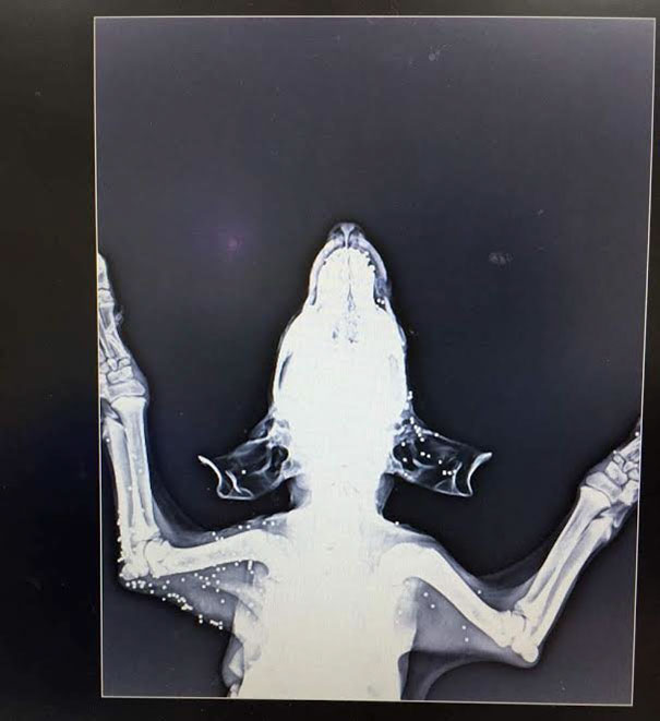 ▼當拍過X光片後,她們發現傷口竟然是人為造成的,有人多次拿著BB槍朝牠射擊!