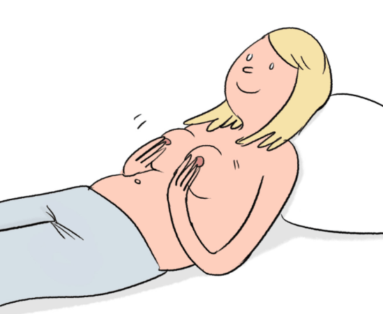 ▼隨時揉捏自己的「咪咪」,就像一對自備玩具。