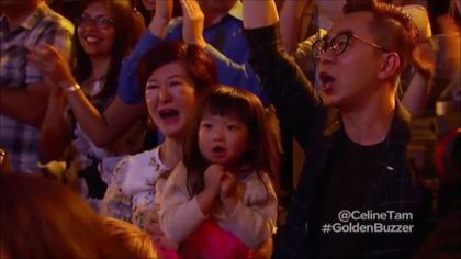 ▼來看看Celine精彩的表演和得到黃金按鈕時那一瞬間的表情吧: