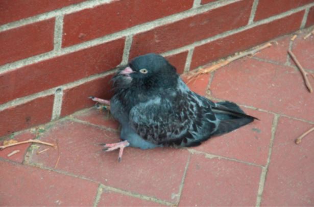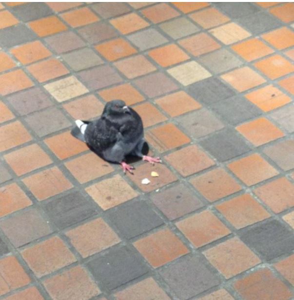 日本網友在人行道發現一隻「呆坐小胖鴿」覺得略有違和感,看清牠的「大叔坐姿」後立馬笑噴!