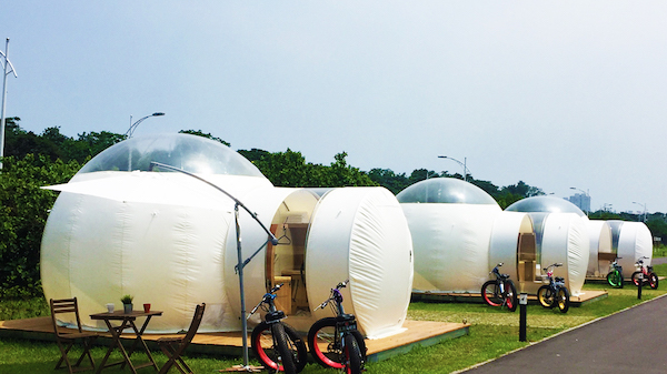 ▼3. 新北市八里文化公園露營區泡泡窩。