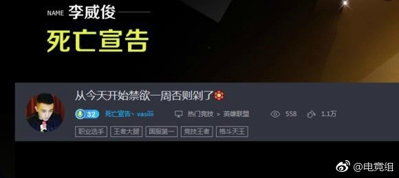 ▼最近他重回賽場,讓粉絲又看到了希望,但隊伍宣布他因故不上場,這一下子惹怒了他的粉絲,紛紛要求隊伍給個說法。隊伍一直沒有回應,他自己竟然在微博上說:「從今天開始禁慾一周不然剁了」,還解釋說因為兩天射了7次,身體狀況不好,不想扯隊友後腿,這才沒有上場。