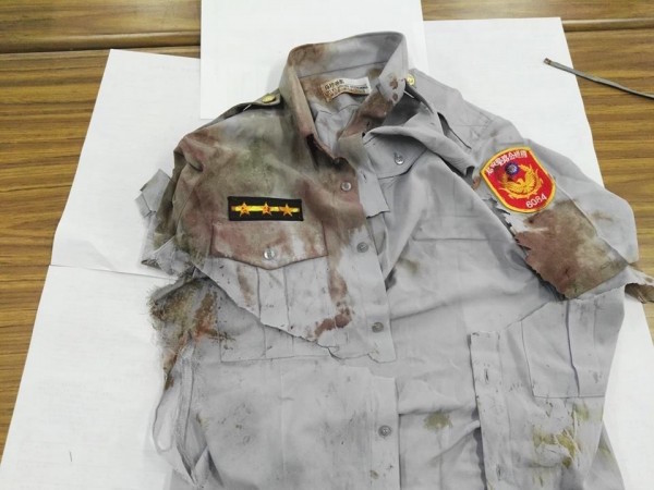 ▼若陳啟瑞被認定是因公死亡,撫卹金就會比因公殉職短少200萬元。同仁在整理陳啟瑞遺物時,看到染血制服,也不禁悲從中來,忿忿不平,對署長呼籲說:「我們不想成為下一個啟瑞!」