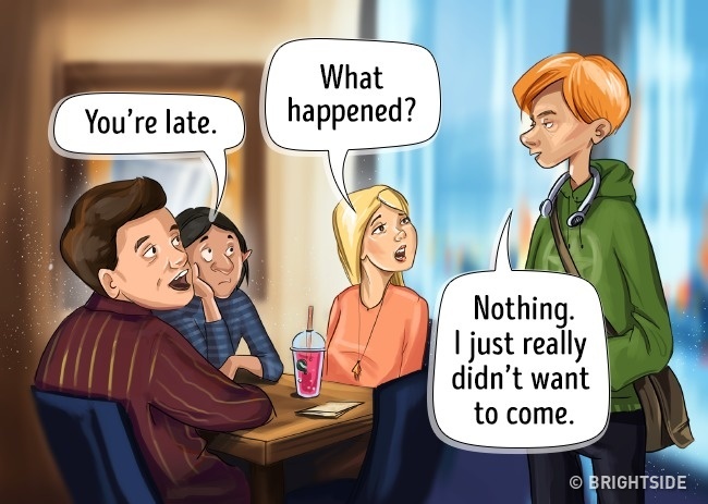 ▼6.朋友們:「你遲到了,出什麼事了?」