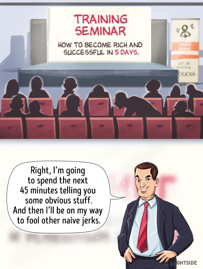 講師:「接下來的45分鐘我會告訴你一些人人都知道的大道理,然後我再去糊弄其他傻子。」