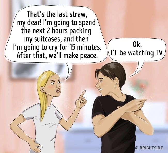 ▼9.女:「我要放大絕了!我準備花2小時收拾行李,然後哭個15分鐘,最後我們再講和。」