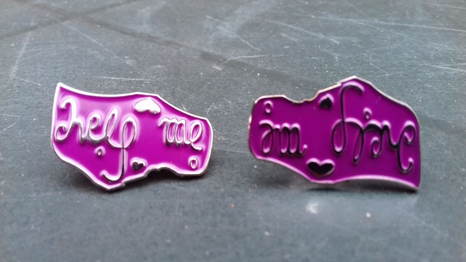 ▼Maisie的家人認為,「Help me」才是她的心聲。表面上看她一切正常,但她的內心很痛苦。Maisie的媽媽將紙條上的訊息做成了徽章,一共750個,在葬禮上分發給親友,希望他們多關心自己的小孩,不要讓孩子重道Maisie的覆轍。他們還在臉書上開設了「Help me,I’m fine」粉絲專頁,希望更多人重視孩子的內心。