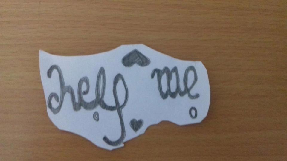 ▼姊姊Amy想要了解妹妹的想法,開始整理她的遺物。她發現了一張寫著「I’m fine」(我很好)的紙條。這看似平常,但因為字體的關係,倒過來看時,紙條上的字卻變成了「Help me」(救救我)。