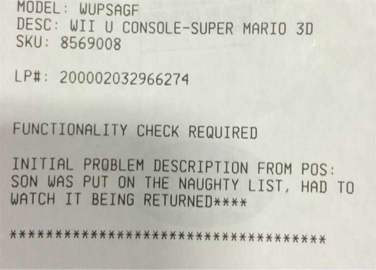 ▼3. 退貨原因:「我兒子做了壞事,所以他要眼睜睜地看著他的新遊戲被退掉。」