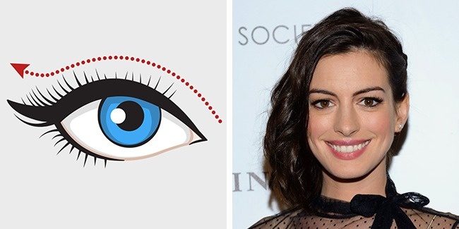 ▼寬眼距:兩眼之間的距離大於一隻眼睛的長度,就是寬眼距。為了讓眼距看起來窄一些,在上眼瞼由內眼角向外眼角畫眼線,然後畫下眼線,畫到下眼瞼一半就好了。
