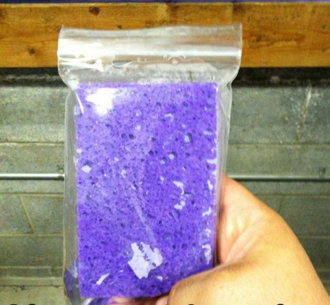 將海綿泡在水中,放到密封袋裡面,接著放入冰箱冷凍,你就會得到一個不會滴水的冰塊喔!