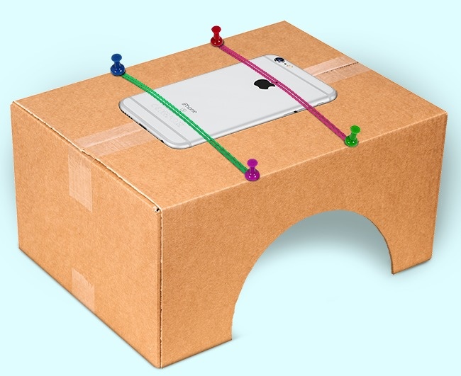 你不覺得當你用手機看電影的時候,過沒多久手就很痠了嗎?現在這裡有一個超級聰明的方法讓你的手可以免於疼痛啊!需要準備的材料有:瓦楞紙箱、螺絲釘或大頭針、2條橡皮筋以及一台智慧型手機。把手機放在紙箱中間,輪廓先畫好之後,開一個洞,將那些多餘的部分用膠水黏在紙箱裡面,這樣可以防止手機滑落,將大頭針釘在紙箱的角落,然後圈上橡皮筋綁緊手機,將旁邊切出一個符合你脖子寬度的洞,接下來就只需要好好地待在你精心製作的家庭電影院,好好享受一場家庭式的饗宴了!