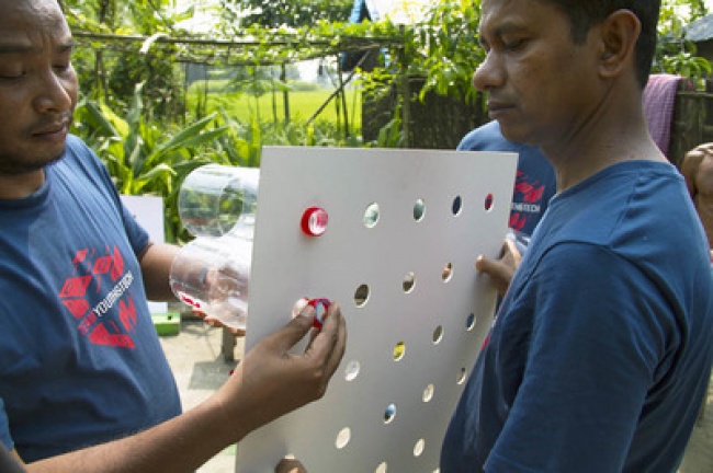 在孟加拉一個小村裡的居民他們發明了一個簡單的方法來解決他們夏天炎熱的問題,這個方法不需要另外花費任何能源,只需要塑膠瓶就可以完成了呢!