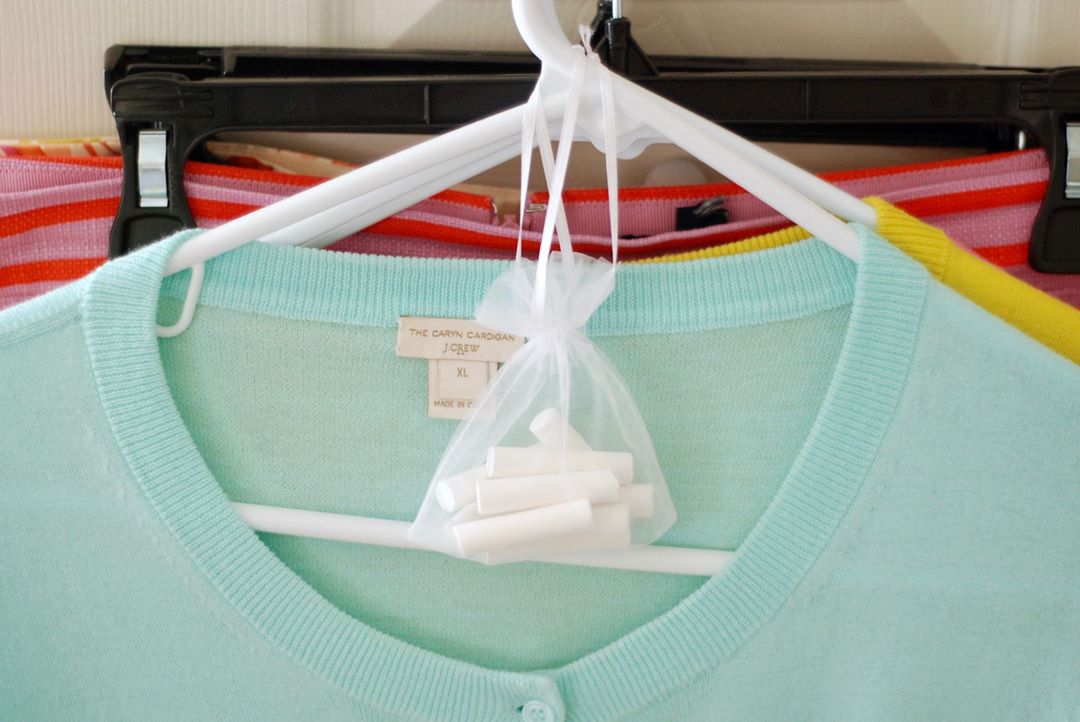 掛一小包粉筆在你的衣櫥裡面,你的衣服就再也不會有臭臭的味道了!粉筆能有效的吸收濕氣跟異味!