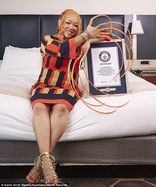 2017年10月04日Ayanna Williams是一位來自德克薩斯州的美甲師,她也是世界上擁有最長指甲的人,贏得了2018年金氏世界紀錄。在23年的時間裡,Ayanna Williams把自己的指甲打理得很好,如今長達5.4公尺的指甲更像是藝術品。