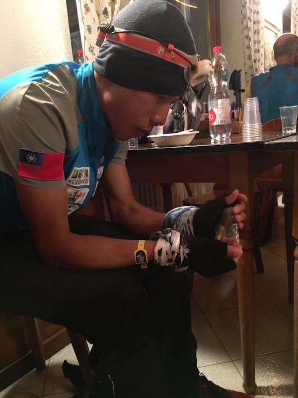 他沿路看著有人失溫,有人摔落山谷跌斷腿,立刻被直昇機載走,自己的頭也開始暈眩、身體發冷、血糖越降越低,「我知道可能會暈倒,但是已經要到終點了啊!」他只好拿出身上所有的食物,統統塞進嘴巴,但比賽後期,他已經痛到每走一步就要一句吶喊…