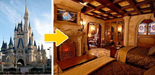 ▼美國迪士尼樂園:灰姑娘城堡裡的公寓。這棟公寓超級豪華,但不是花錢可以訂到的。每年1月迪士尼都會舉辦抽獎活動,運氣好的人能夠得到住宿機會。
