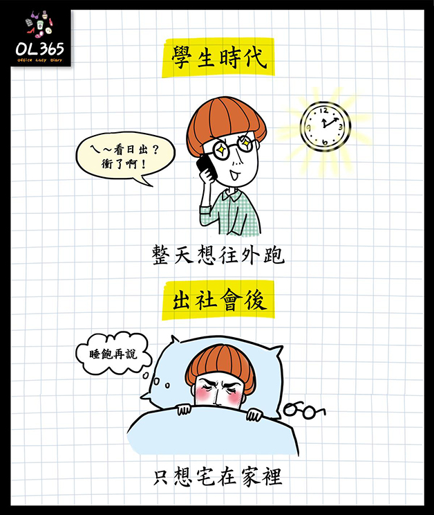 ▼學生時代什麼事都比睡覺重要;出社會後睡覺最大,什麼事都不要打擾。