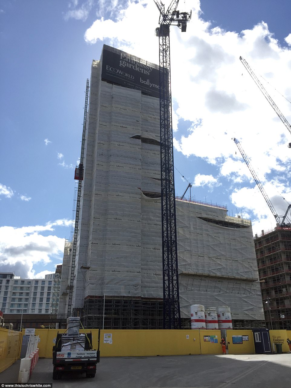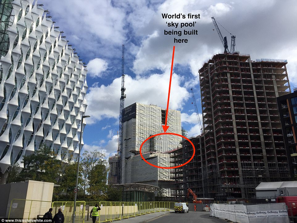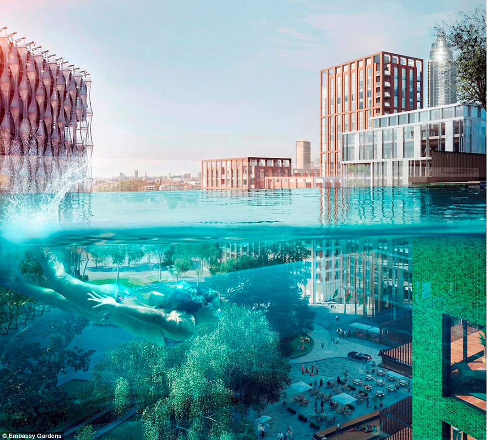▼新的大使館附近有公寓,還帶有空中泳池,住戶可以在兩幢建築物之間享受懸掛在半空中的泳池,俯瞰整個城市的美景。