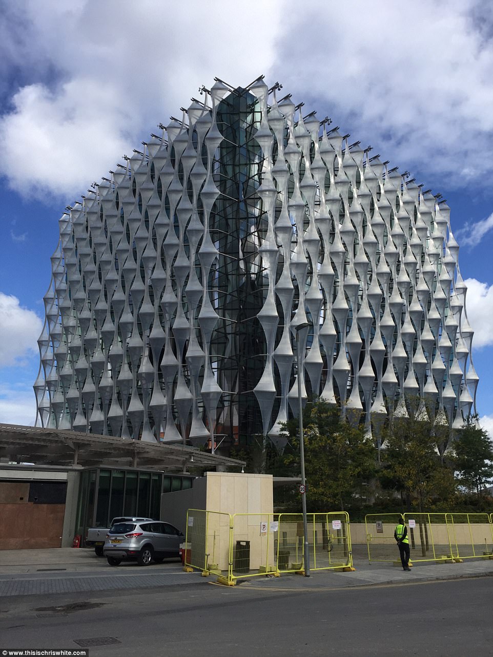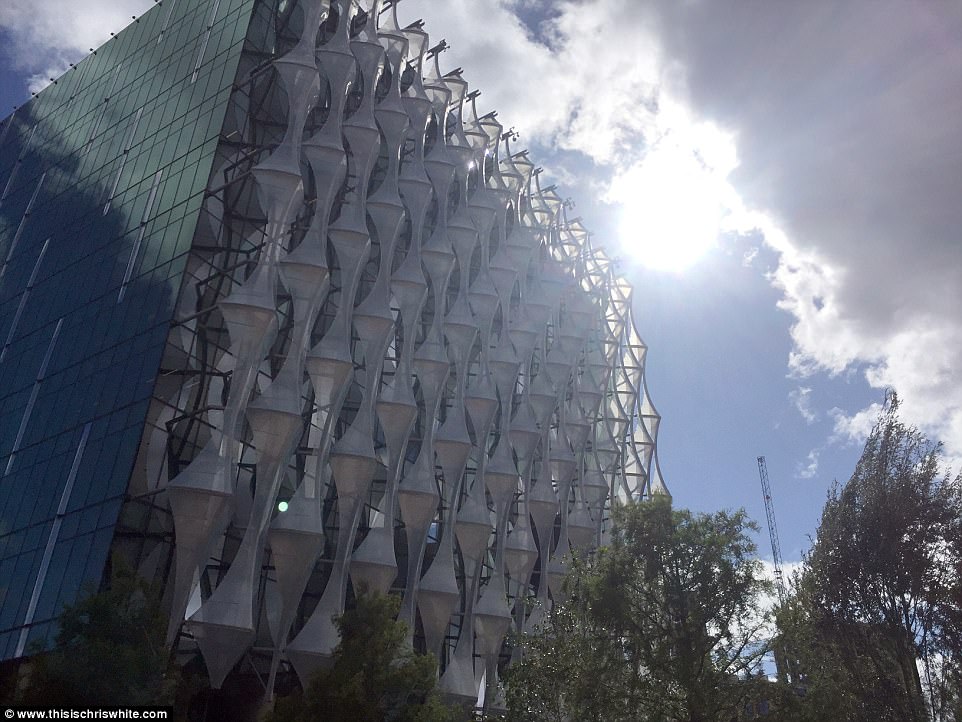 ▼新館最亮眼的設計還有能源自給自足。整棟大樓表面覆蓋著一層薄薄的光電池,通過太陽能轉化為電能,即使沒有外部電源供給也能實現自我滿足。