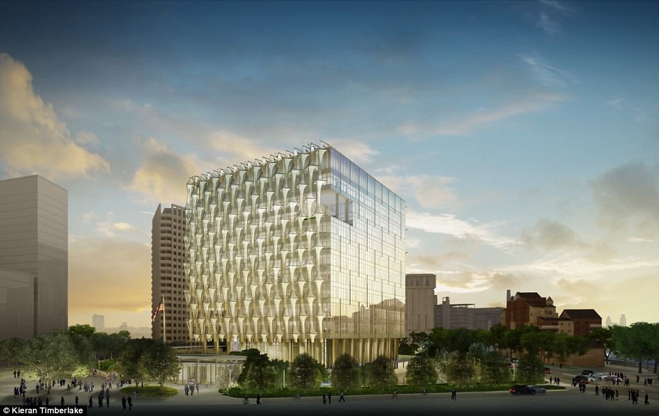 ▼美國曾經的大使館由於過於狹小無法滿足需要,必須尋找地方。知名建築事務所Kieran Timberlake承擔了新大使館的設計,設計師也表示「新館將滿足所有的安全標準,將利用周圍的景觀,它沒有牆也沒有圍欄。」