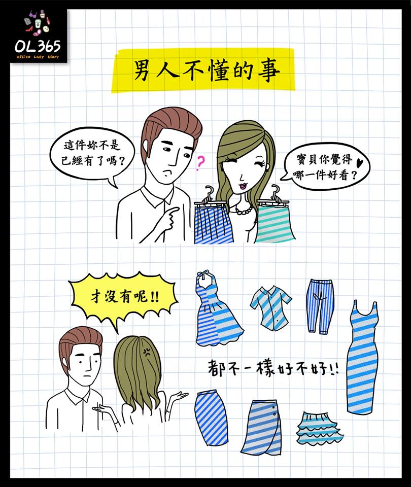 2017年09月27日男生和女生相處時,總是能夠感覺到這兩種性別之間真的從根本開始就完全不一樣。雖然生長在差不多的環境中,不過因為生理上的不同竟然能夠造成如此巨大的差異!臉書專頁「OL 365」就以女生的角度出發,分享了許多男女之間的差異,一起來看看到底是不是真有其事吧!