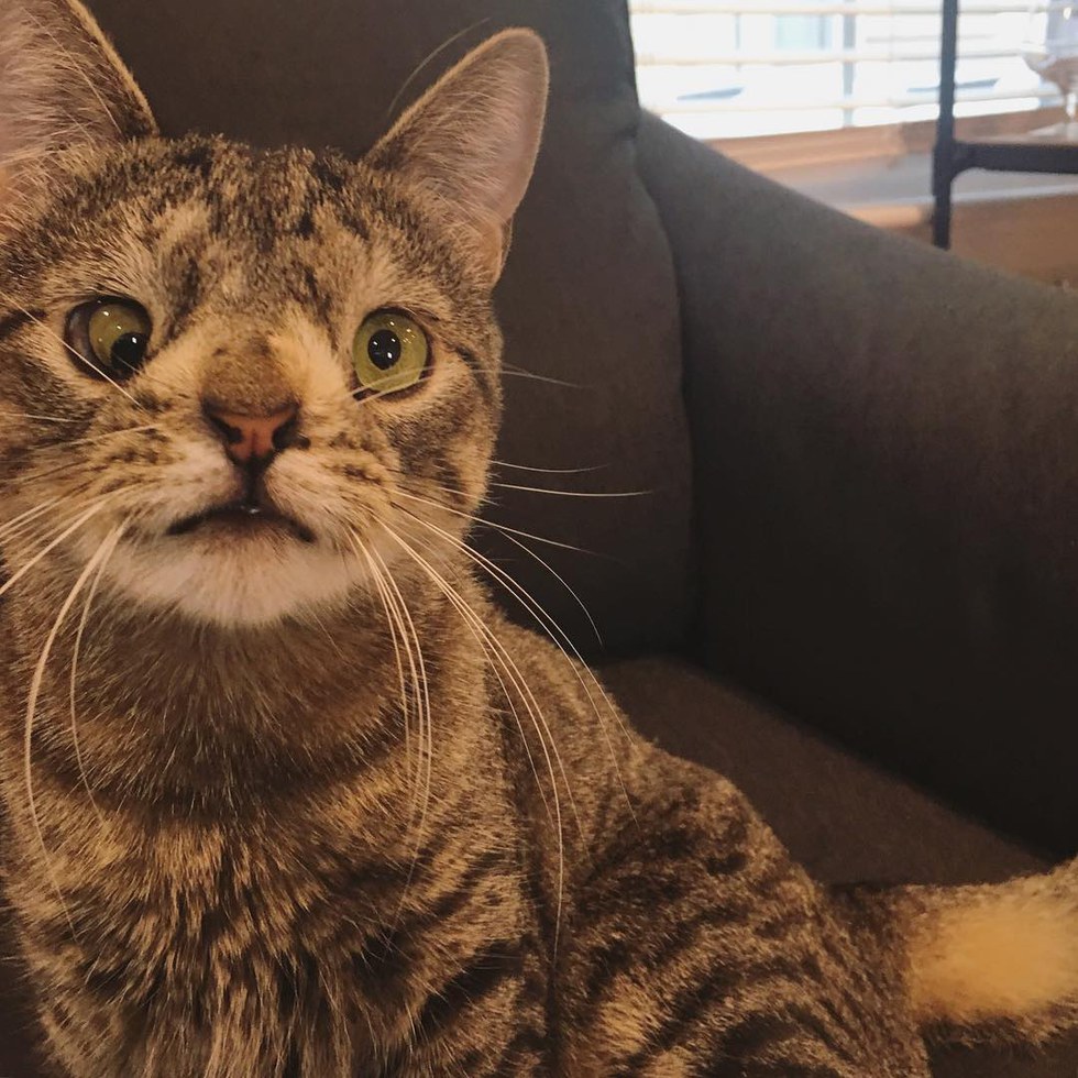 2017年09月28日去年時,有人在一間中餐廳外的垃圾桶內發現了一隻流浪貓。牠剛剛出生不久,看起來怪怪的,不僅眼睛不協調,還是個塌鼻子,與其他的貓咪很不一樣。