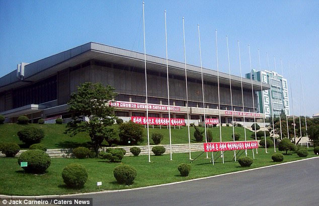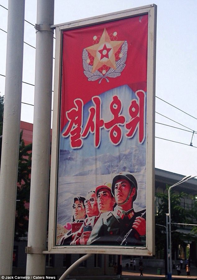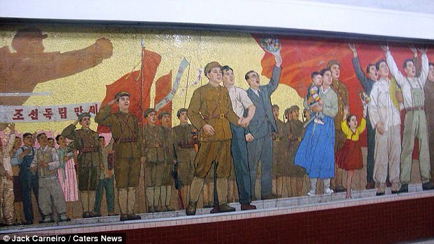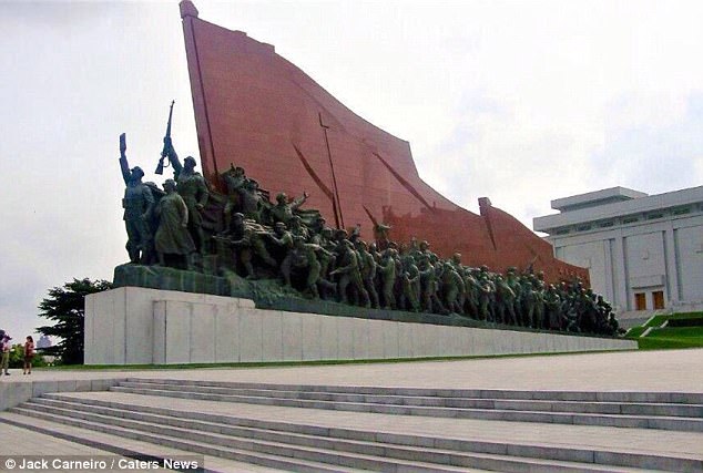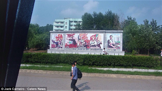 ▼在北韓學期間,他看到了科學家們慶祝導彈發射成功的遊行活動,還看到了宣揚北韓士兵殺死美國人的壁畫,並參觀了北韓前領導人的遺體。