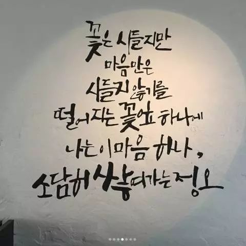 ▼他親自在牆上寫下:「雖然花在枯萎,但希望這顆心不枯萎,隨著掉落的花瓣,飄舞的這顆心,迷人的堆積起來的正午。」