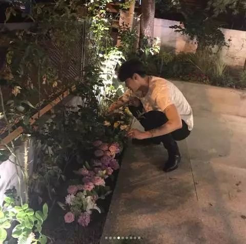 ▼除此之外,咖啡廳外的花圃中還種著一些花,這都是他見面會時粉絲送給他的花束。他親自將花種到花園裡,並說:「花枯萎了很可惜,因為那份可惜之心,我就嘗試著種花,但好像不能活很長的時間阿。」