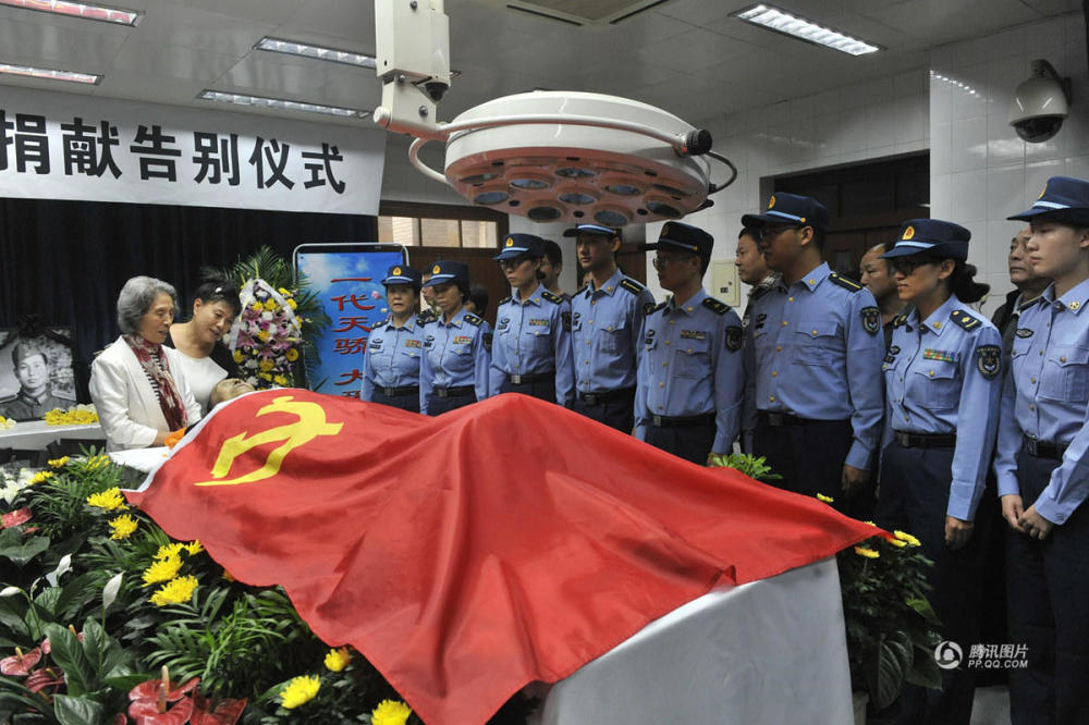 ▼9月29日,老人的遺體捐獻告別儀式舉行。老人的四個兒女、孫子孫女、單位的同事、領導、空軍軍醫大學的領導、師生等人一起過來送別老人。