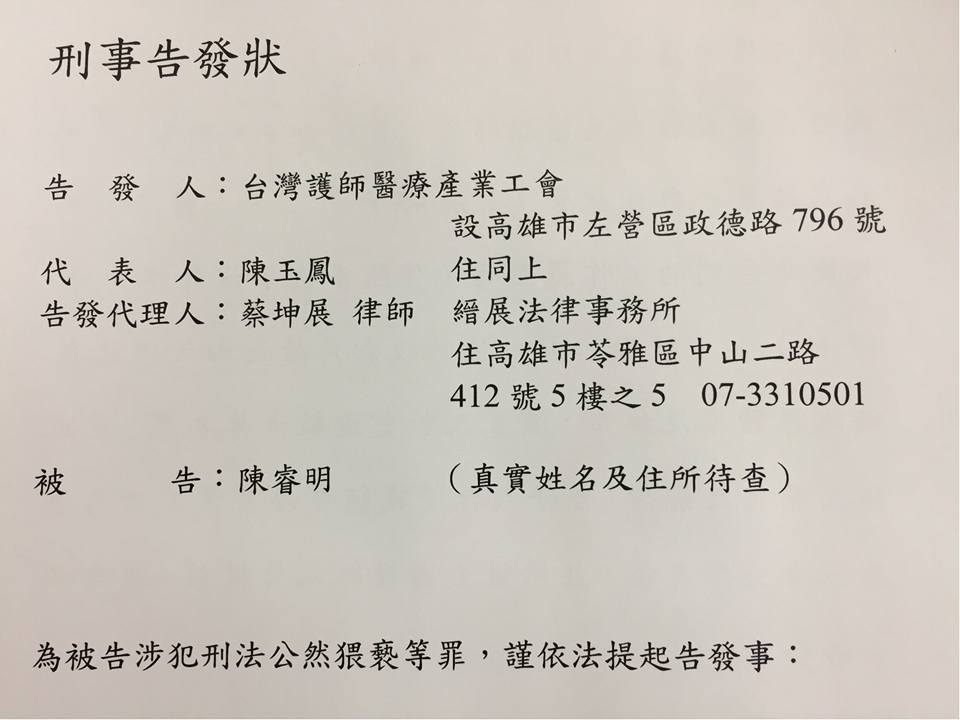 ▼台灣護師工會也作出聲明,譴責陳男的惡劣詆毀行為,並向陳男提告,要他為不負責任的行為付出代價!