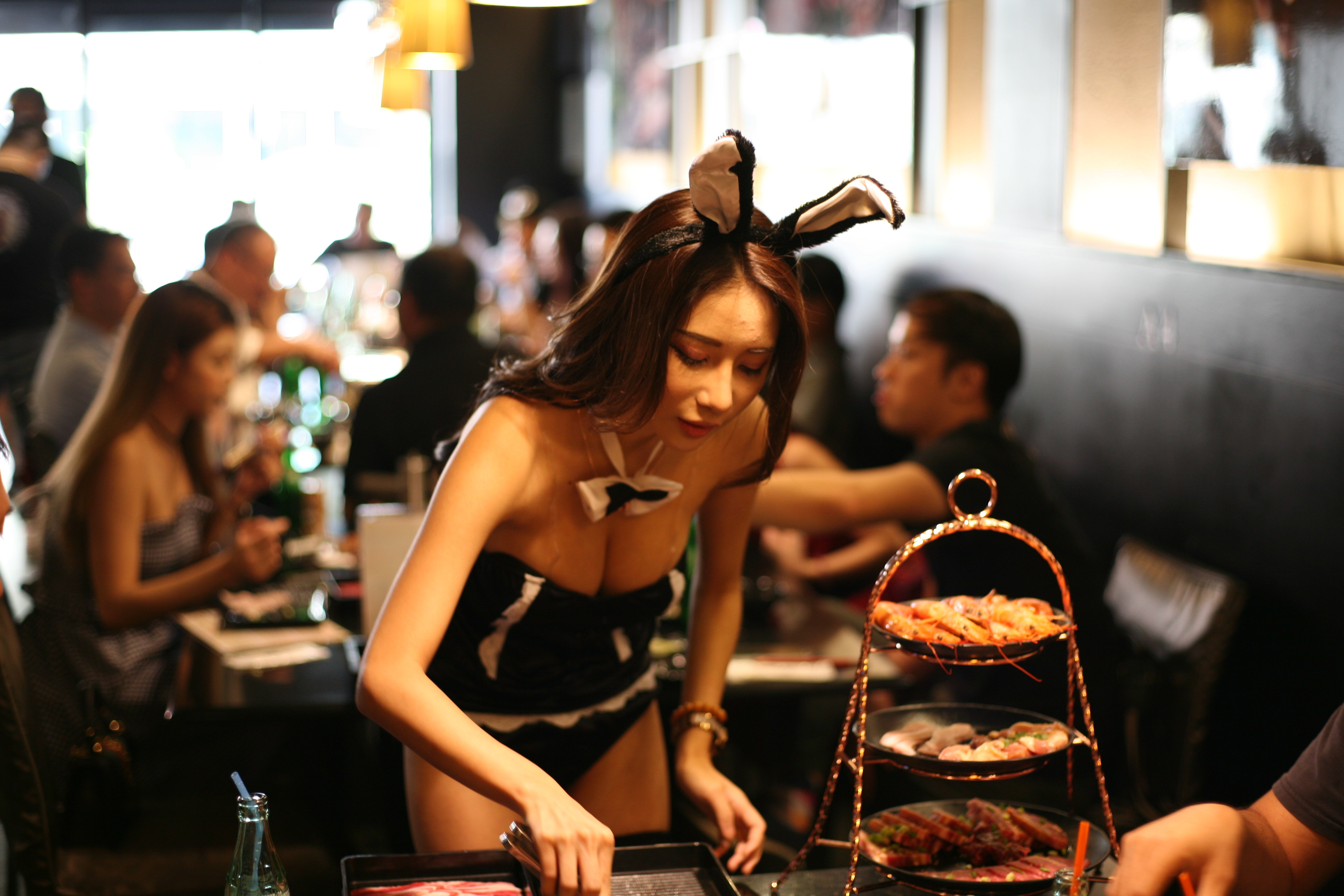 桃園烤肉店推出兔女郎服務生,吃過的網友都表示:「招牌肉球真的很讃!」