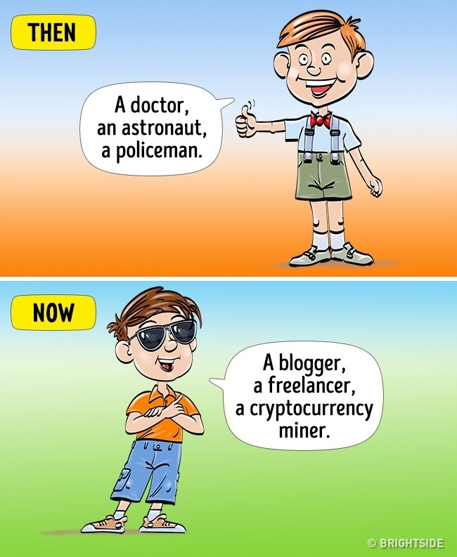 ▼以前的小孩長大後想當醫生、太空人、警察;現在的小孩想當博主、自由職業者。