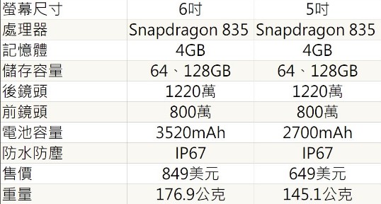 ▼以下就是Pixel 2 XL(6吋)和Pixel 2 (5吋)的規格表: