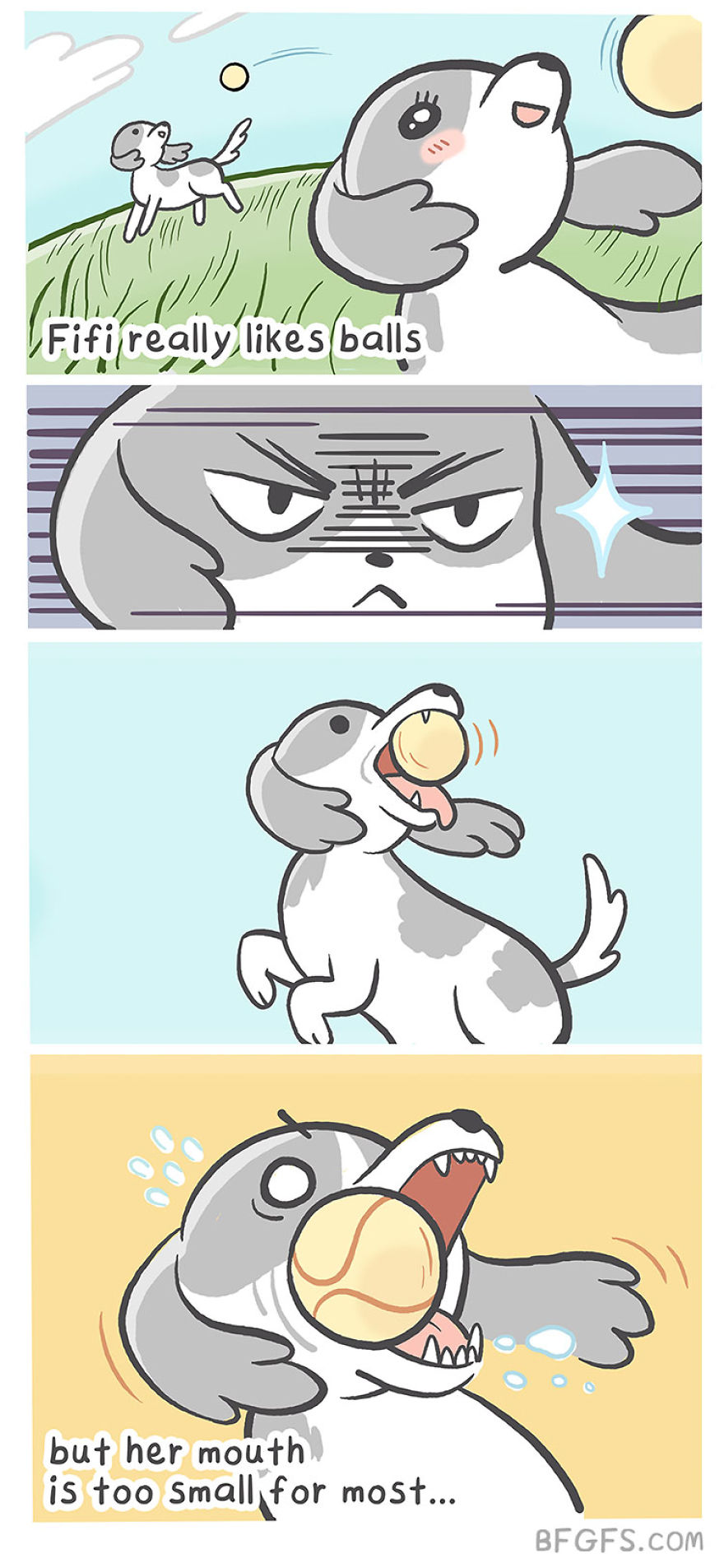 ▼​12.Fifi超喜歡玩球,但牠的嘴巴太小,根本咬不住。