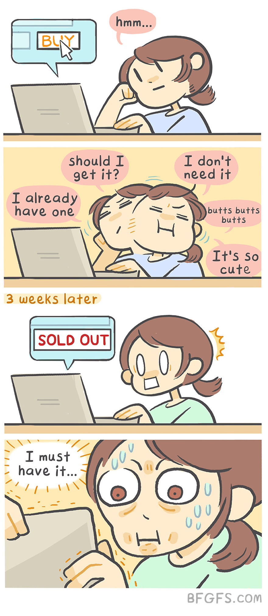 ▼​19.女:「我已經有一個了,還要買嗎?其實不需要啦,但它真的超可愛啊。」