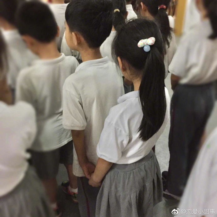 2017年10月09日回想起初戀的時光,那是記憶中最美好的一段。微博帳號「戀愛小甜事」最近分享了一件「甜炸了」的網友經歷,小學生也要出來「虐狗」了。一對穿著校服的小學生竟然在集會的時候偷偷的牽手,這甜蜜的瞬間更是讓「單身狗」感受到了一萬點爆擊。