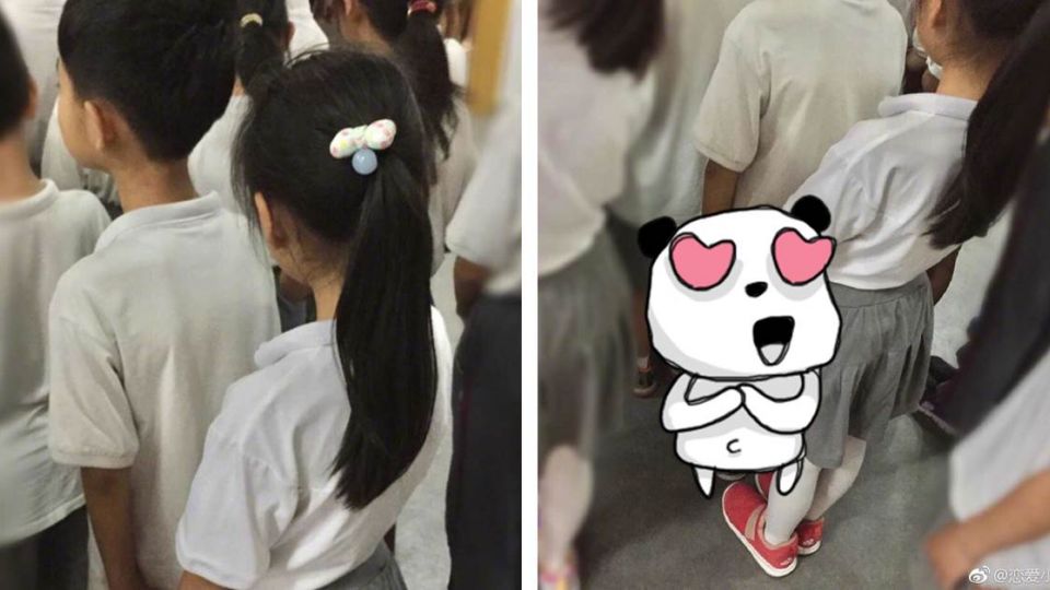 穿校服的小學生集會也要背後偷偷拉手,網友嫉妒喊話「會懷孕」。