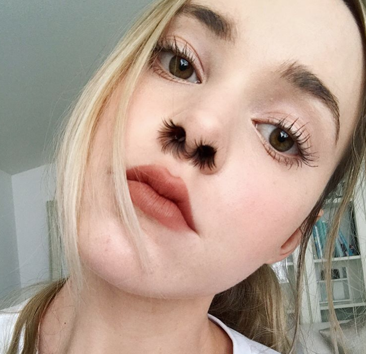 ▼這些已經脫離了正常人的審美範圍,但在網上卻超流行。最近,一名女網友把腦筋動到了鼻孔上,她將假睫毛一根根貼在鼻孔處,看起來就像鼻孔開花一樣!
