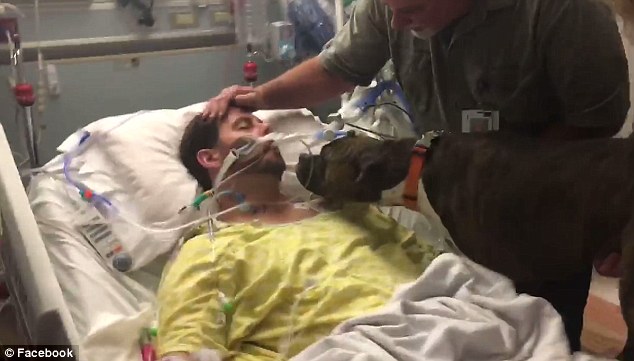 ▼醫院同意了家屬的請求,讓Mollie到病房與爸爸告別。那天家人們聚集在Ryan的病床前,Mollie也見到了心愛的爸爸,牠似乎知道發生了什麼,尾巴、耳朵都低垂著,看起來很傷心。