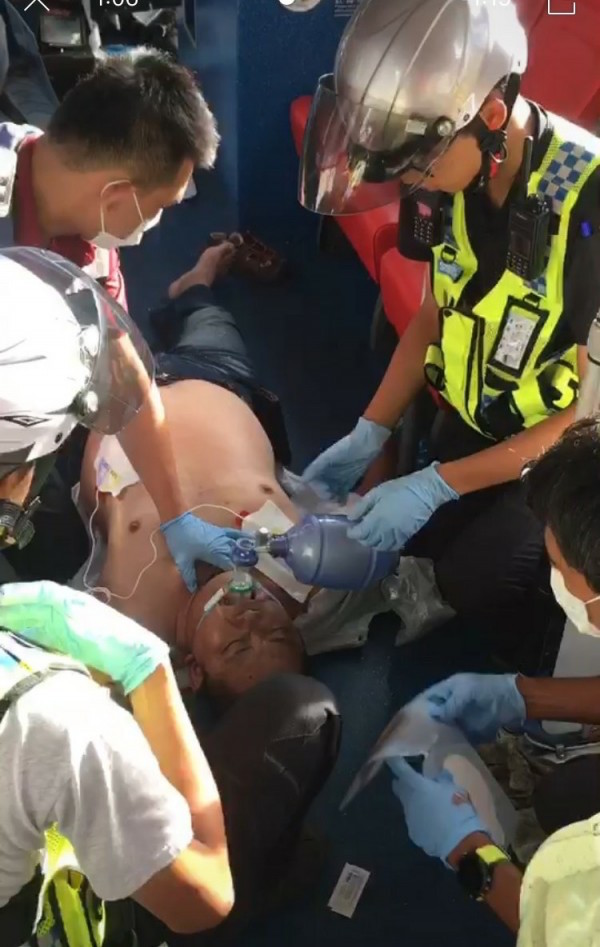 ▼在眾人幫助下,司機透過救護車上的反覆壓胸、電擊,順利恢復心跳。急救人員也欣慰指出,病患心臟停止18分鐘,幸好有好心路人們幫忙做心臟按壓,讓含血氧持續輸送到腦部,這位病患才得以留下一命啊!