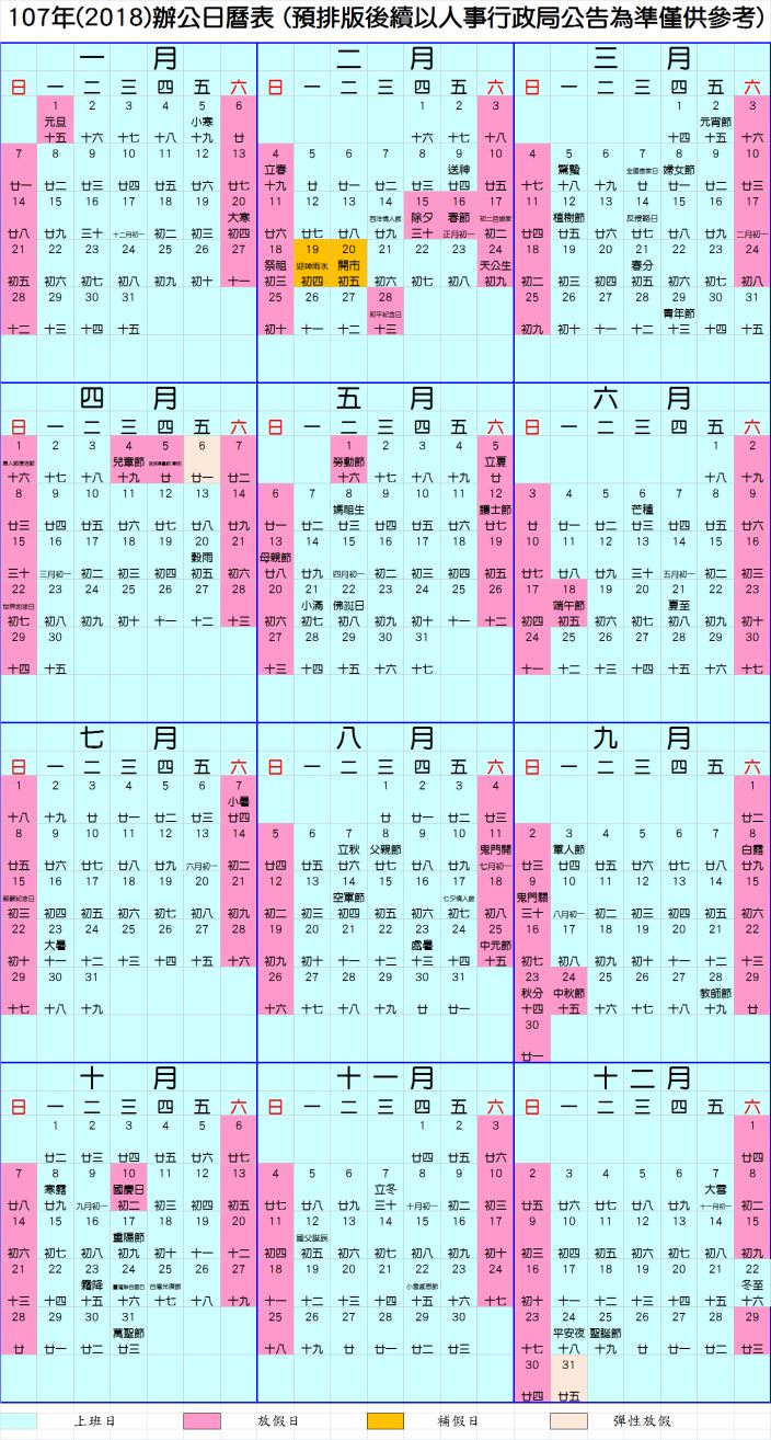 2017年10月11日2017年已經逐漸邁入尾聲,準備該來迎接2018啦!相信對很多人來說,新的一年度最期待的就是「什麼時候可以放假」,趕快來看看人事行政局公開的假期表,來規劃出遊行程吧!