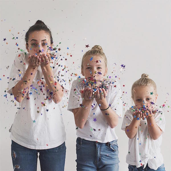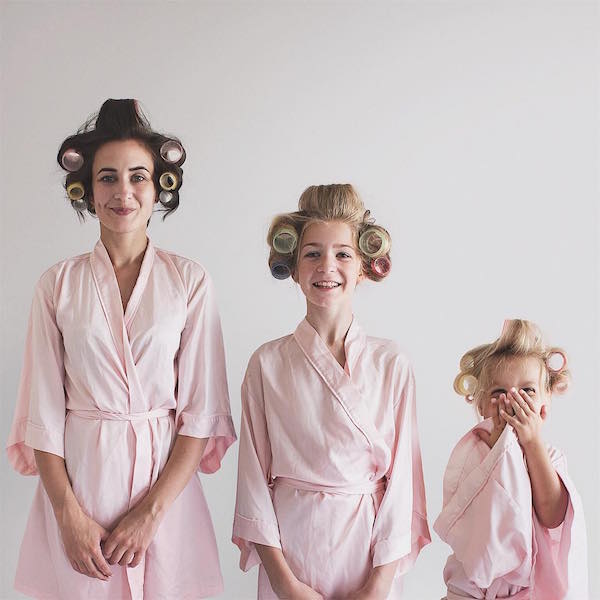 媽媽與2個女兒穿同樣衣服合拍「大、中、小」激萌照片,小女兒每次的搞怪表情都是最大亮點!