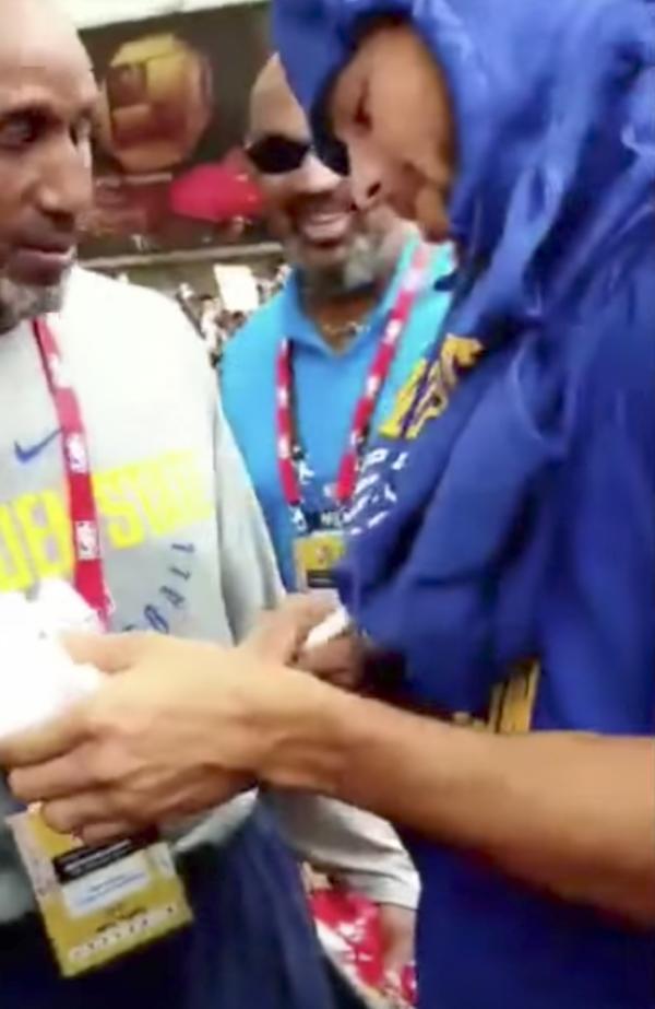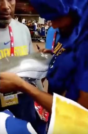 ▼不過近日有一段影片在網路上流傳,原來有中國球迷拿了一雙球鞋給柯瑞簽名,柯瑞察覺之後當場傻眼。