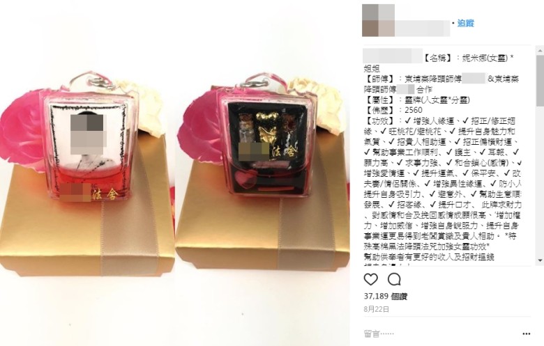 ▼除此之外他也出售「靈牌」,號稱可以改善人緣、旺桃花、改變運氣等等,吸引許多民眾留言詢問價錢和下訂。